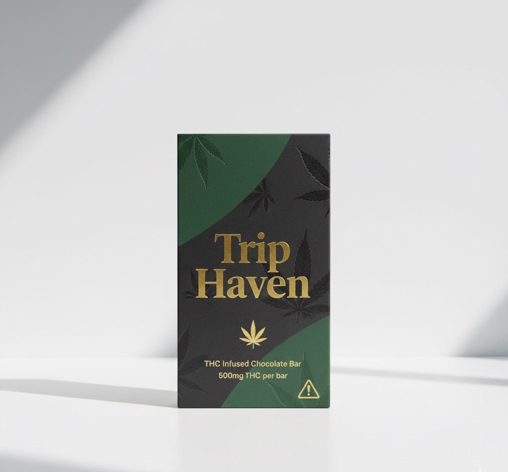 Trip Haven THC Infused Chocolate Bars combine rich chocolate with a smooth 500mg THC blend for gentle euphoria, body relaxation, and a calm, happy mood. Perfect for unwinding, boosting creativity, or enjoying a chill evening.